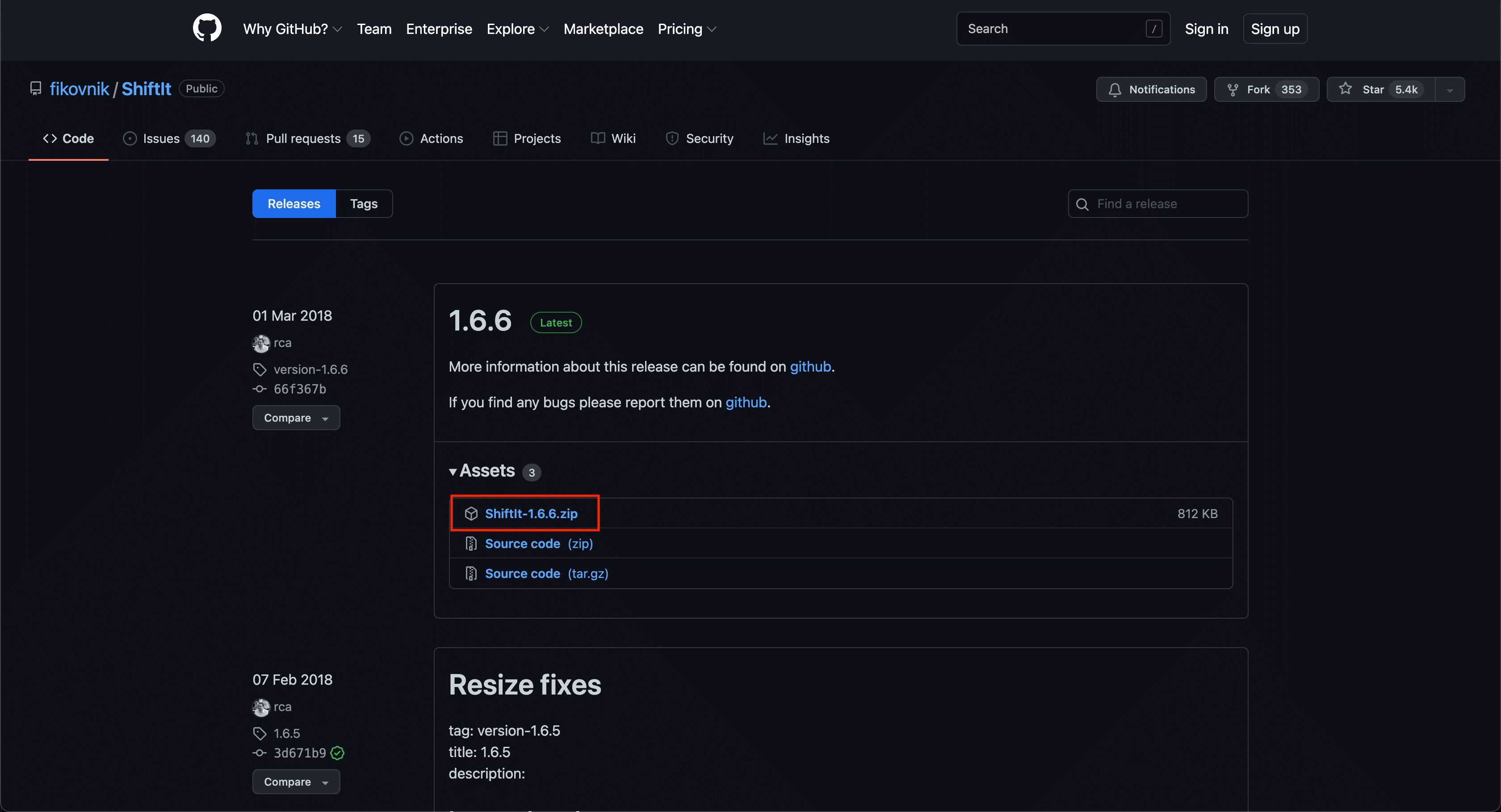 Latest(最新)バージョンの「Assets」内のZipファイルをダウンロードします。