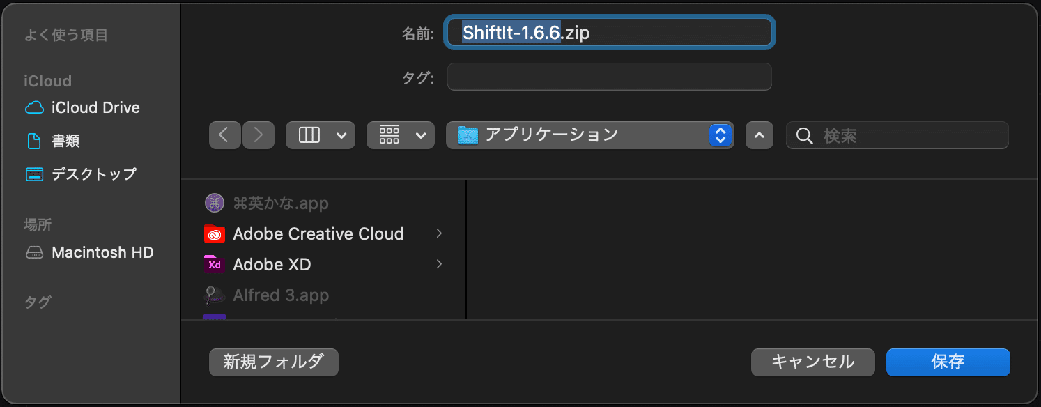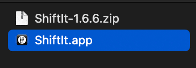 zipファイルを解凍します。そうするとShiftIt.appが表示されます。