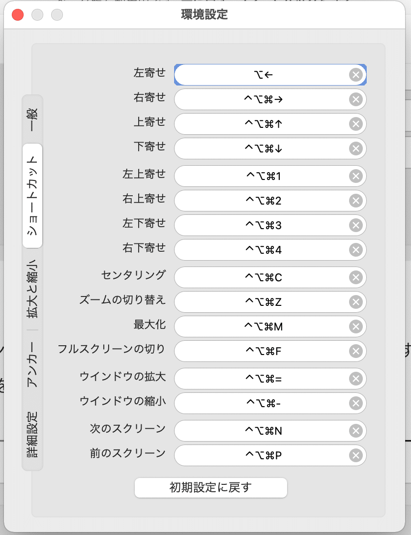 設定したいコマンドを入れます。今回は「option+←」を設定しています。これで、「option+←」を押すことで左寄せにすることができます。
